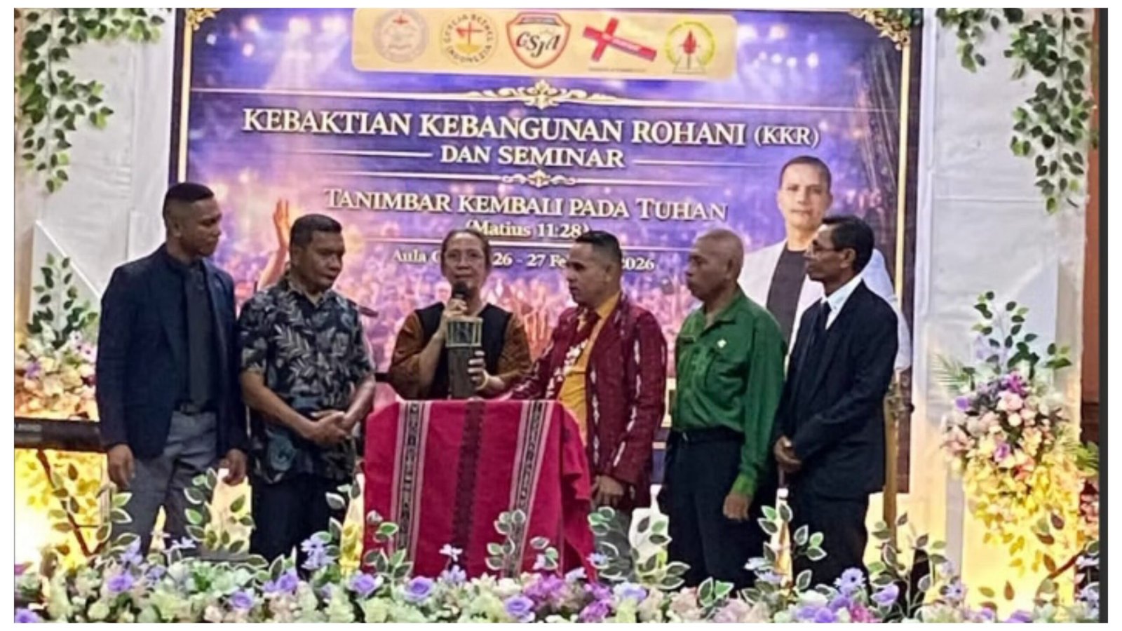 Saumlaki,kpktipikor.id -Seruan pertobatan dan pembaruan moral menggema kuat dalam pembukaan Kebaktian Kebangunan Rohani (KKR) dan Seminar bertajuk “Tanimbar Kembali kepada Tuhan” yang digelar di salah satu hotel di Kota Saumlaki, Kabupaten Kepulauan Tanimbar, Kamis (26/2/2026) pukul 18.00 WIT.