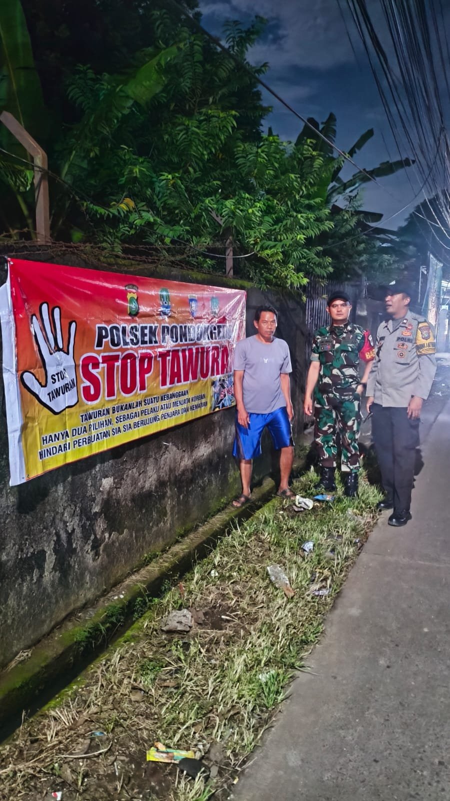Kegiatan yang berlangsung hingga larut malam tersebut berjalan dengan aman dan lancar. Dengan adanya spanduk imbauan yang terpasang jelas di titik-titik krusial, Polsek Pondok Gede berharap pesan perdamaian dan ketertiban dapat tersampaikan dengan efektif kepada seluruh lapisan masyarakat. Sinergi antara Bhabinkamtibmas dan Babinsa di Jatibening Baru ini menjadi bukti komitmen Polri-TNI dalam menciptakan lingkungan yang aman, nyaman, dan bebas dari aksi tawuran.