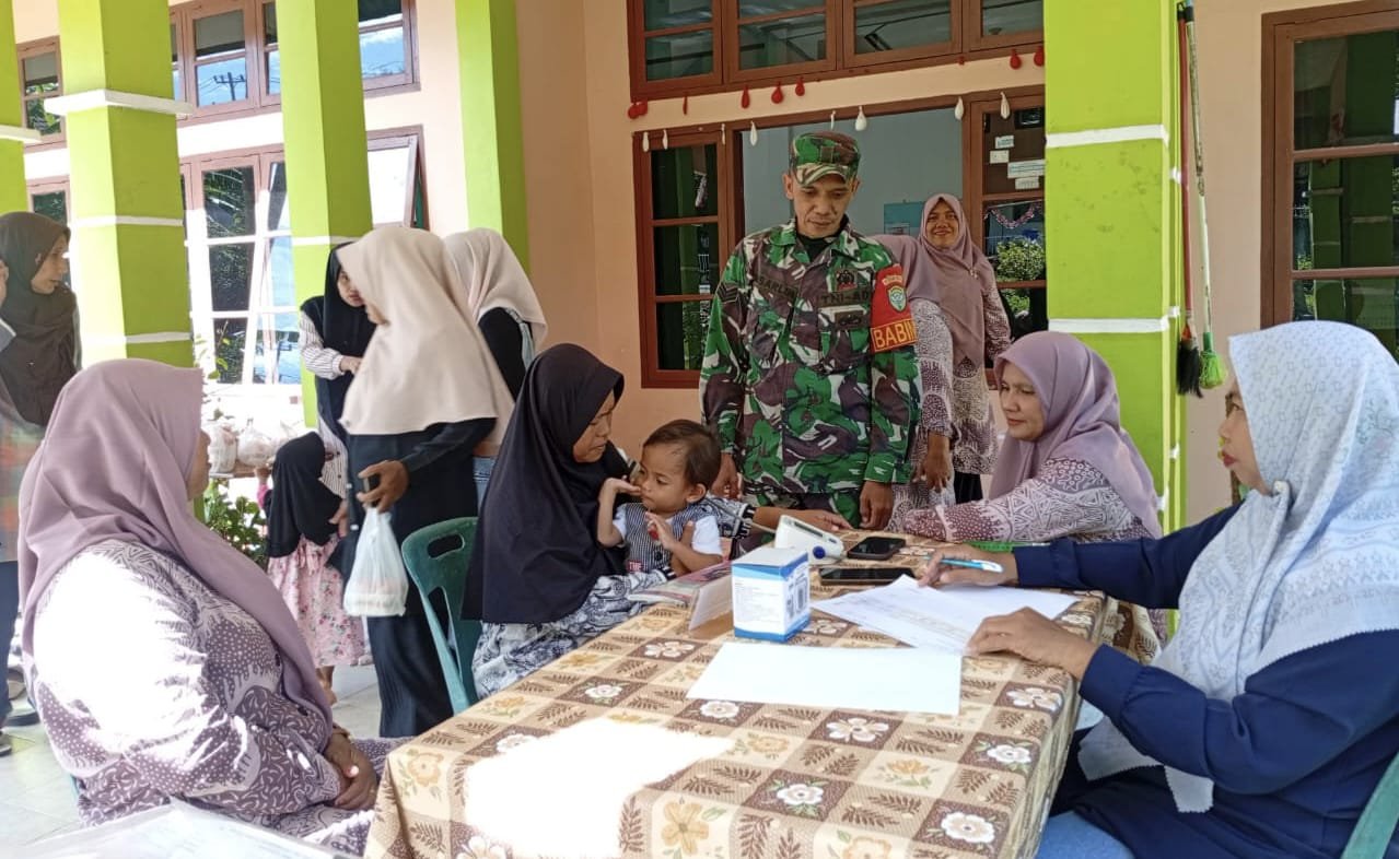 Dalam kegiatan tersebut, Babinsa Serka Insarlin turut membantu kelancaran pelayanan dengan memberikan pendampingan kepada tenaga kesehatan dan mengatur masyarakat agar kegiatan berjalan tertib. Kehadiran Babinsa menjadi bentuk nyata dukungan TNI AD terhadap peningkatan kualitas pelayanan kesehatan masyarakat.