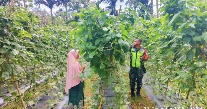 Sabang Aceh, kpktipikor.id.- Babinsa 04 Gampong Krueng Raya Koramil 02/Sukakarya Kodim 0112/Sabang, Sertu Hendra, melaksanakan pendampingan kepada petani sayuran kacang panjang milik Ibu Nurbaidah yang berlokasi di Jurong Batu Singa Berfakta, Gampong Krueng Raya, Kecamatan Sukakarya, Kota Sabang, pada Minggu (29/12/2025).