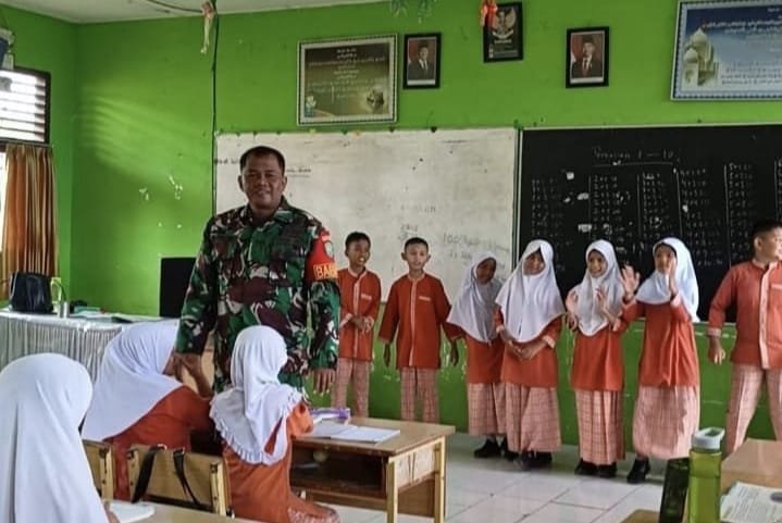 Di hadapan para siswa, Serma Sutrisno menyampaikan pentingnya mencintai tanah air, menghormati simbol negara, serta menjaga persatuan dan kesatuan bangsa. “Anak-anak harus bangga menjadi warga negara Indonesia. Rajin belajar, hormat kepada guru dan orang tua, serta menjaga persatuan adalah bagian dari bela negara,” ujar Serma Sutrisno di sela penyampaian materinya.