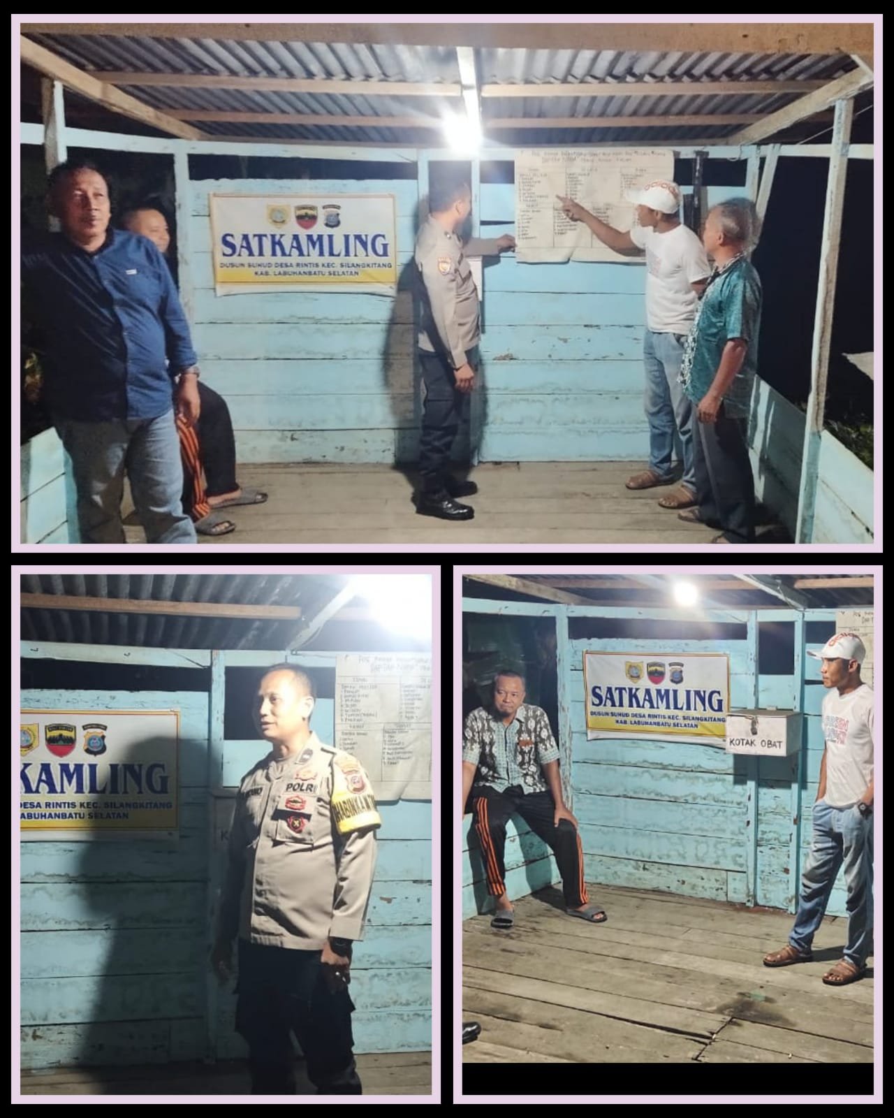 Labuhanbatu Selatan ,kpktipikor.  id – Bhabinkamtibmas Polsek Silangkitang, AIPDA Sujono, melaksanakan kegiatan sambang ke Pos Satuan Keamanan Lingkungan (Satkamling) Dusun Suhut Tengah, Desa Rintis, Kecamatan Silangkitang, Kabupaten Labuhanbatu Selatan, Senin (11/8/2025) malam.