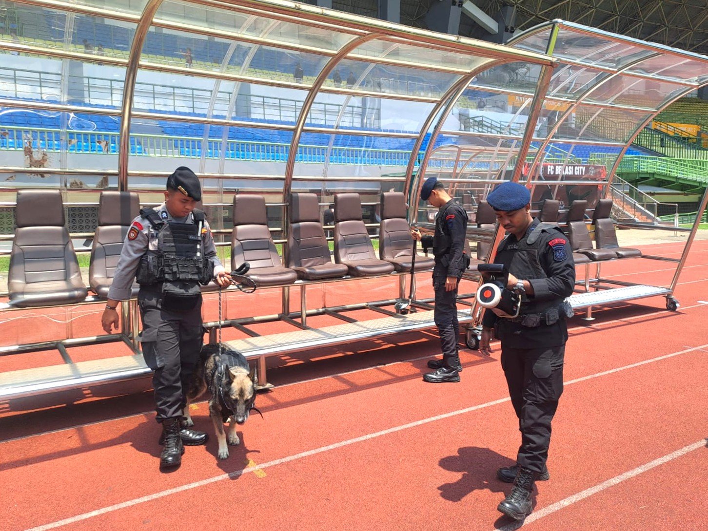 Sekitar pukul 08.00 WIB, personel tiba di lokasi dan melaksanakan koordinasi dengan pihak panitia penyelenggara. Selanjutnya, dilakukan sterilisasi menyeluruh di sejumlah area strategis, antara lain ruang ganti pemain, tribun VIP, ruang VIP, ruang medis, ruang wasit, kursi cadangan, lingkar lapangan, serta toilet penonton.