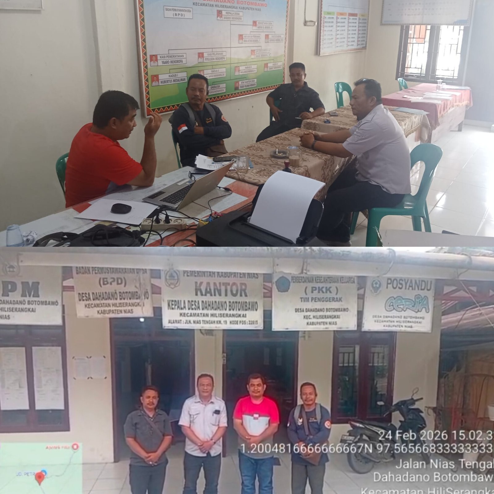Menindaklanjuti informasi tersebut, sejumlah awak media melakukan investigasi langsung ke lapangan dan mendatangi Balai Kantor Desa Dahadano Botombawo pada Selasa, 24 Februari 2026. Kedatangan tim jurnalistik disambut baik oleh Kepala Desa Dahadano Botombawo, Bazaro Mendrofa, didampingi Sekretaris Desa Marthin Damai Sejahtera Mendrofa, S.H., serta staf desa Anugerah Iman Mendrofa.