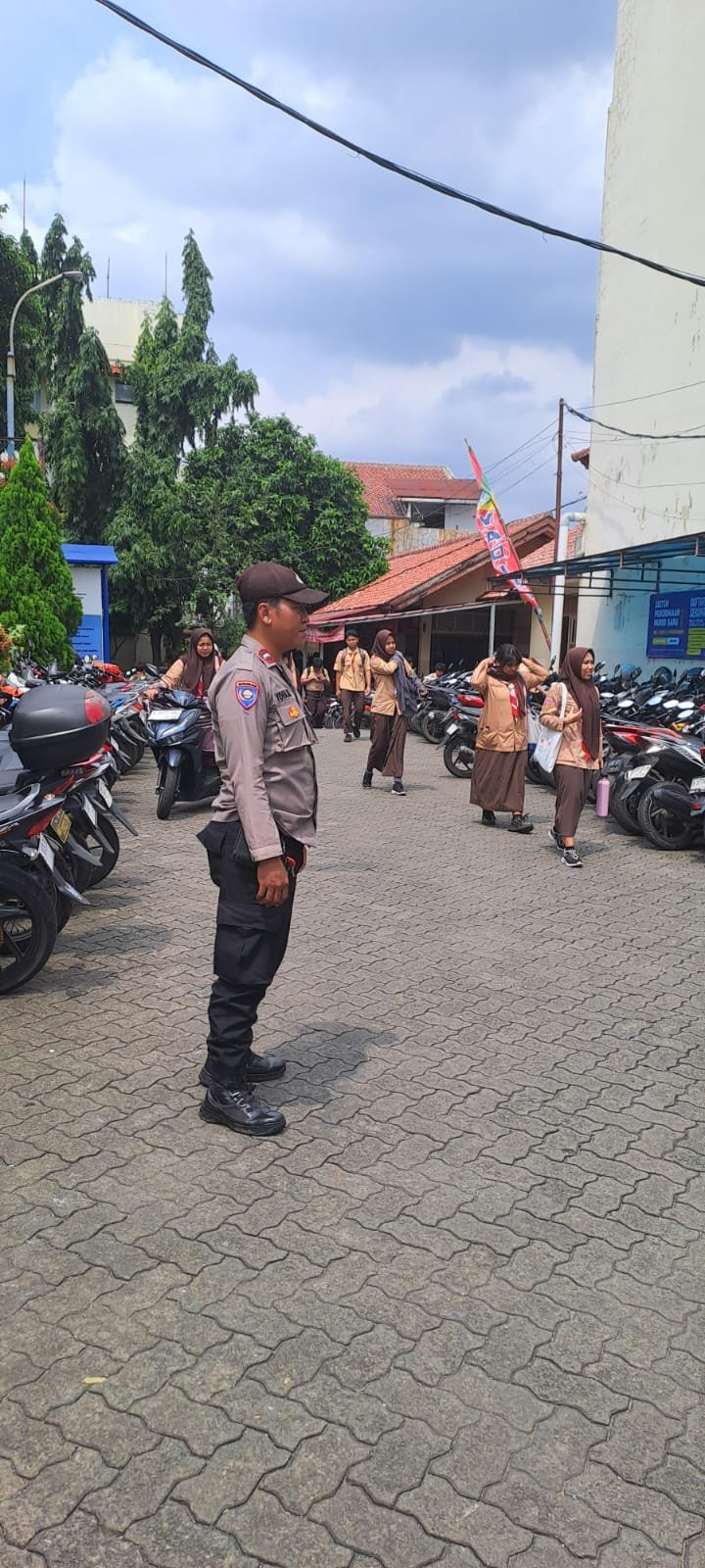 Bhabinkamtibmas Kelurahan Jaticempaka, Aipda Yoga Widya Istanto, menyampaikan pengarahan langsung kepada siswa-siswi SMK 6 dan SMA 4 Yadika JTC. Meskipun saat ini para siswa sedang menjalani ujian sekolah, petugas tetap menyampaikan pesan pencegahan yang tegas.