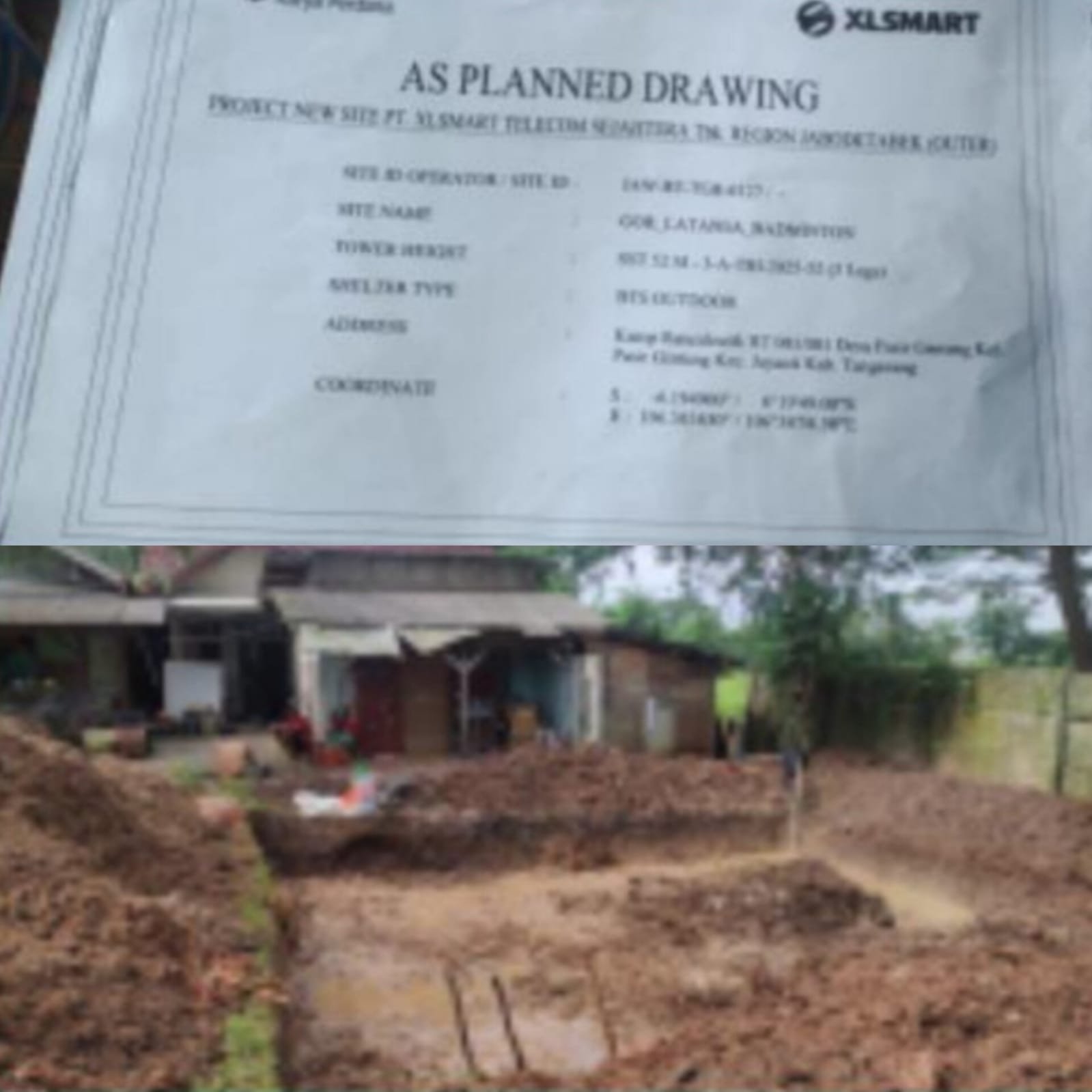 Berdasarkan pantauan di lapangan, pembangunan tower BTS tersebut baru memasuki tahap penggalian tanah dan diperkirakan telah berjalan sekitar lima hari. Lokasi proyek berada di kawasan permukiman padat penduduk, dengan jarak yang disebut-sebut hanya beberapa meter dari rumah warga.