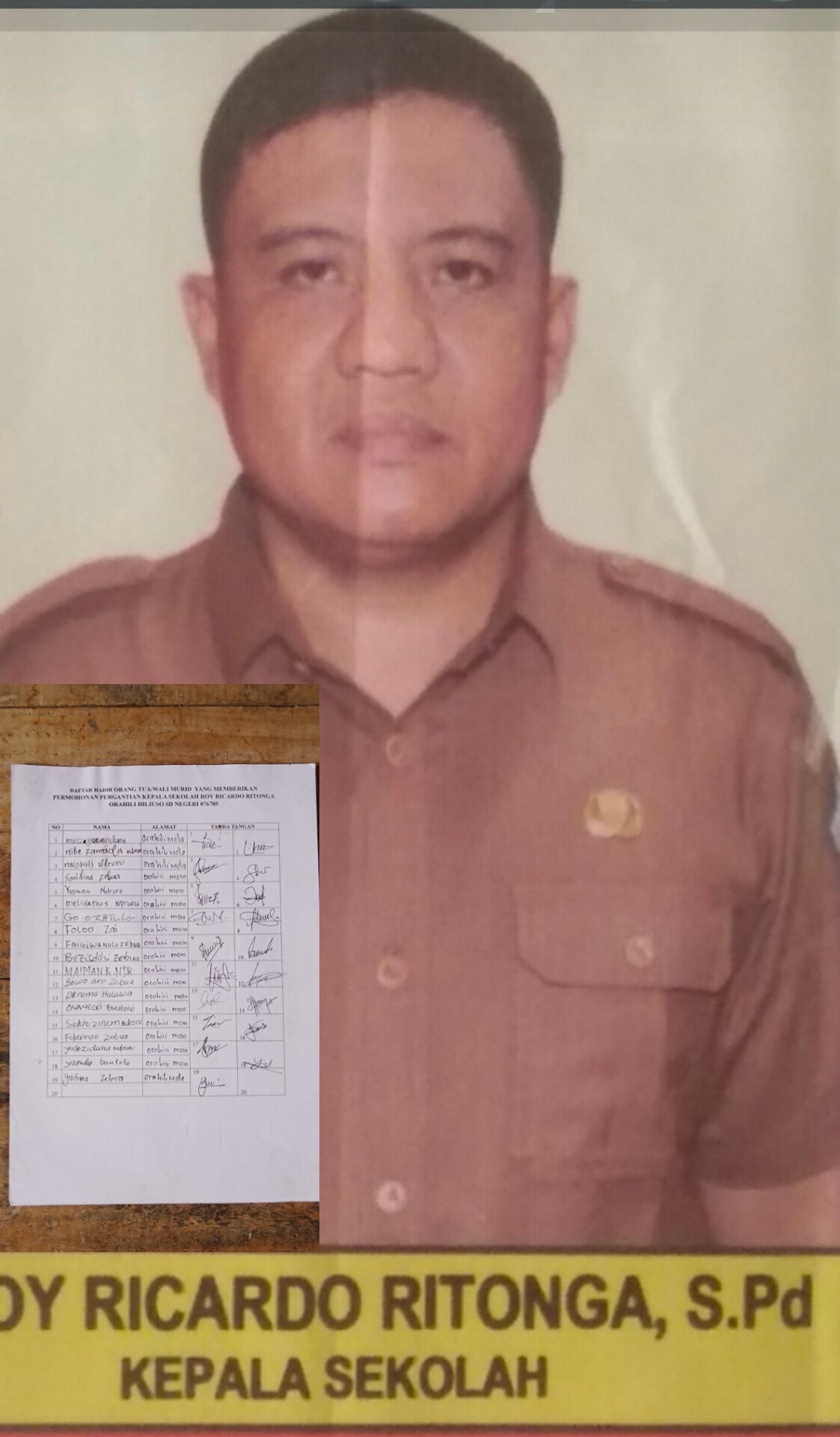 Kepala SDN 076705 Orahili Hiliuso, Royricardo Ritongga, menjadi sorotan sejumlah orangtua siswa terkait dugaan pungutan liar (pungli), penggelembungan jumlah siswa, hingga dugaan penyalahgunaan Dana Afirmasi di lingkungan sekolah tersebut.