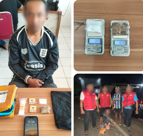 Dari hasil pemeriksaan badan, ditemukan satu paket yang berisi narkotika jenis sabu dan tembakau sintetis dalam penguasaan pelaku.