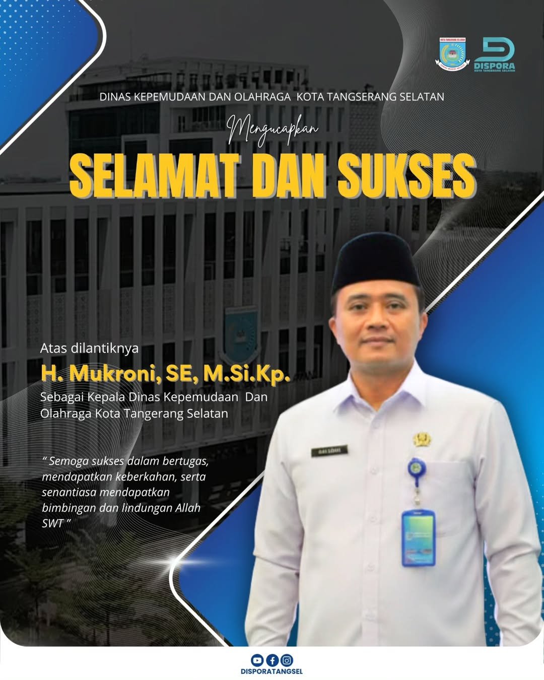 Ucapan selamat dan dukungan pun mengalir atas pelantikan tersebut. Harapan besar disampaikan agar H. Mukroni dapat menjalankan amanah dengan penuh integritas, dedikasi, serta semangat dalam mendorong kemajuan generasi muda dan prestasi olahraga di Kota Tangerang Selatan.