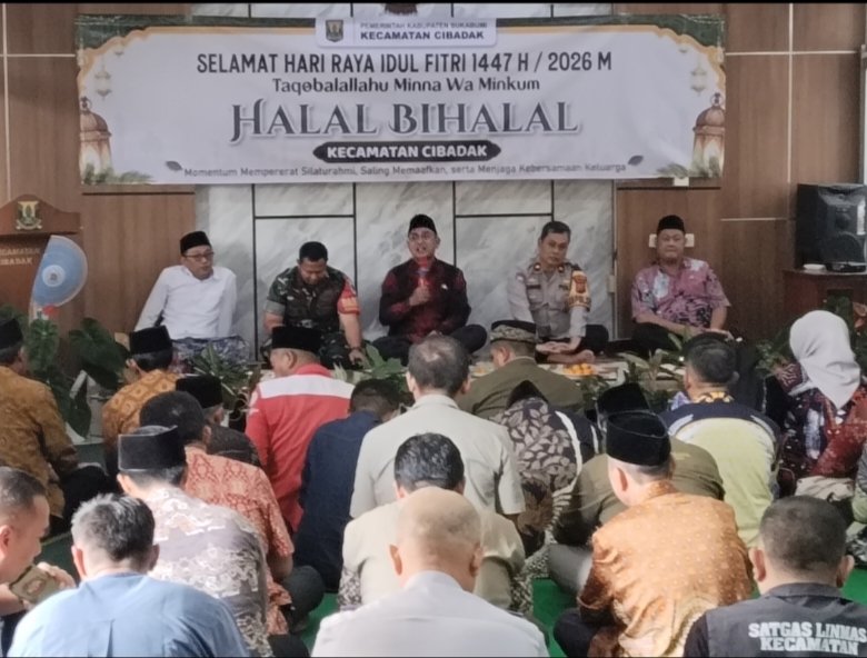 SUKABUMI,Cibadak || Pemerintah Kecamatan Cibadak menggelar kegiatan Halal Bihalal yang berlangsung di Aula Kantor Kecamatan Cibadak pada 2 Maret 2026. Acara tersebut dihadiri oleh Camat Cibadak, Bapak Mulyadi, S.Pd.I, unsur TNI/Polri seperti Babinsa dan Kapolsek, serta para kepala desa se-Kecamatan Cibadak.
