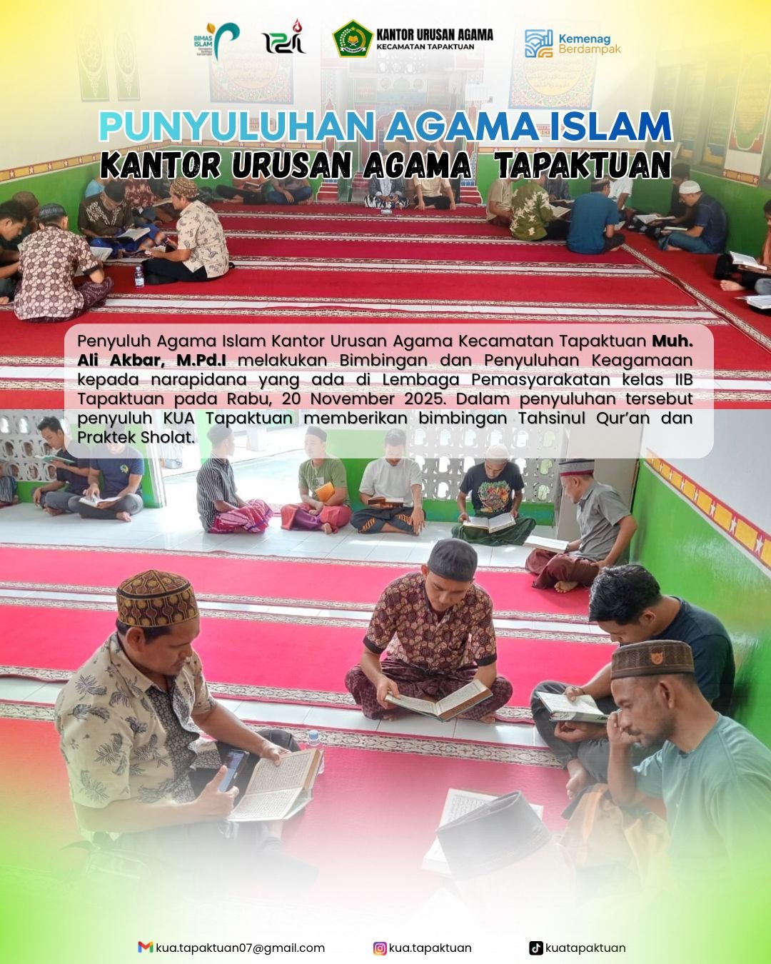 Kegiatan Tahsinul Qur’an serta praktik gerakan sholat berjamaah bersama warga binaan Rutan Kelas IIB Tapaktuan menjadi bukti bahwa dakwah dan pendidikan agama tidak mengenal batas ruang.