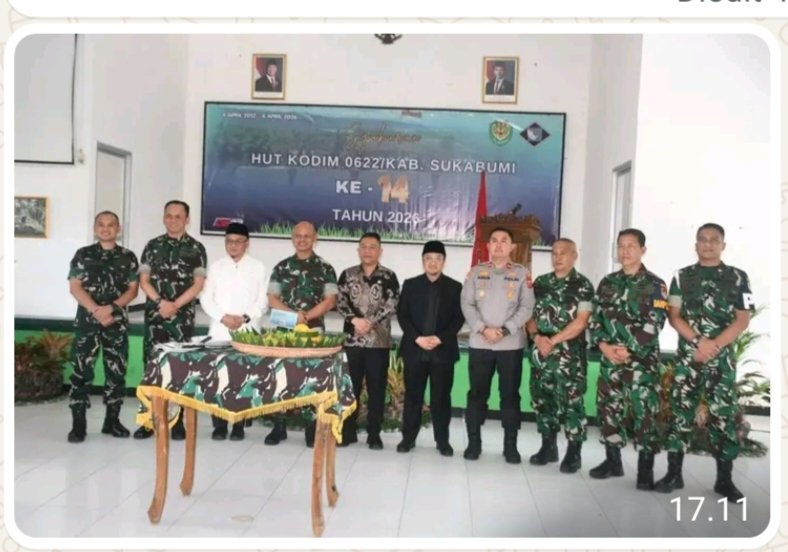Kpktipikor.id || SUKABUMI — Wakil Bupati Sukabumi H. Andreas menghadiri syukuran Hari Ulang Tahun (HUT) ke-14 Kodim 0622/Kabupaten Sukabumi yang digelar di Aula Kodim, Jumat (10/4/2026). Kegiatan tersebut turut dihadiri unsur Forkopimda serta tamu undangan lainnya.