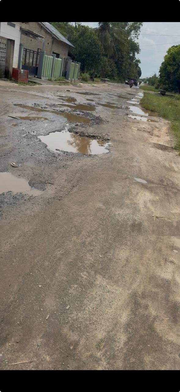 Pantauan di lokasi, Jumat 25/4/2026, lubang menganga dengan kedalaman 30-50 cm tersebar di sepanjang jalan. Saat hujan turun, jalan berubah jadi lautan lumpur. Sebaliknya, musim kemarau membuat debu beterbangan hingga masuk ke rumah warga.