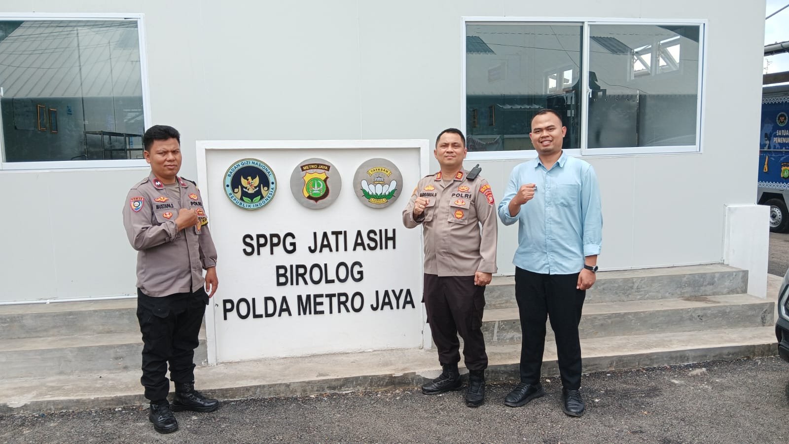 AKP Marganda Siahaan didampingi Bhabinkamtibmas Kelurahan Jatiluhur Aipda Mustapa Siregar, S.H., serta Kepala SPPG Jatiasih BIROLOG Polda Metro Jaya, Bapak Aldi Firmanto.