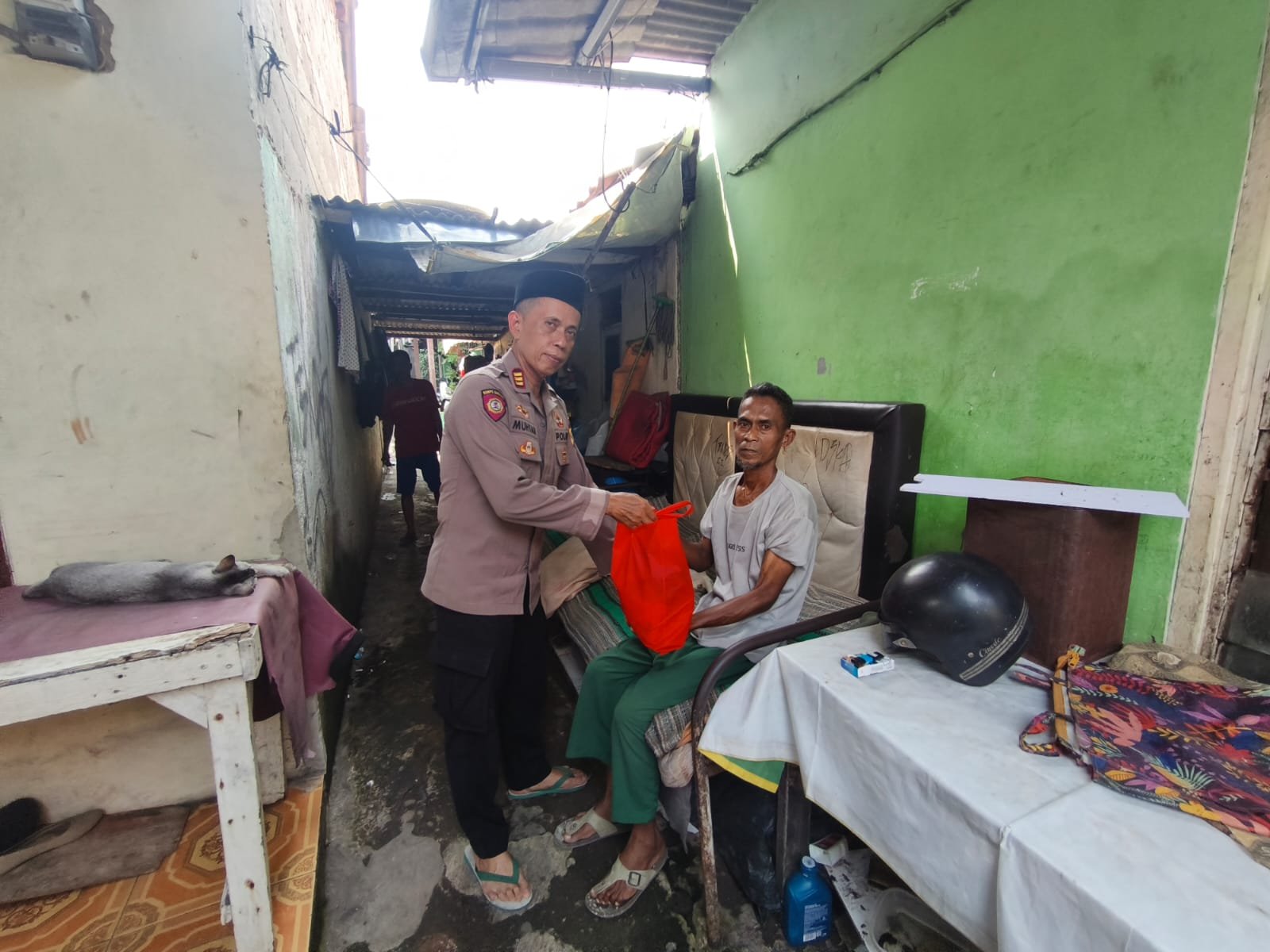 Dalam kesempatan tersebut, Waka Polsek bersama jajaran memberikan bantuan tali kasih dan paket sembako kepada warga yang membutuhkan. Selain memberikan bantuan, Waka Polsek juga menyampaikan doa dan harapan agar warga yang sedang mengalami sakit dapat segera diberikan kesembuhan.