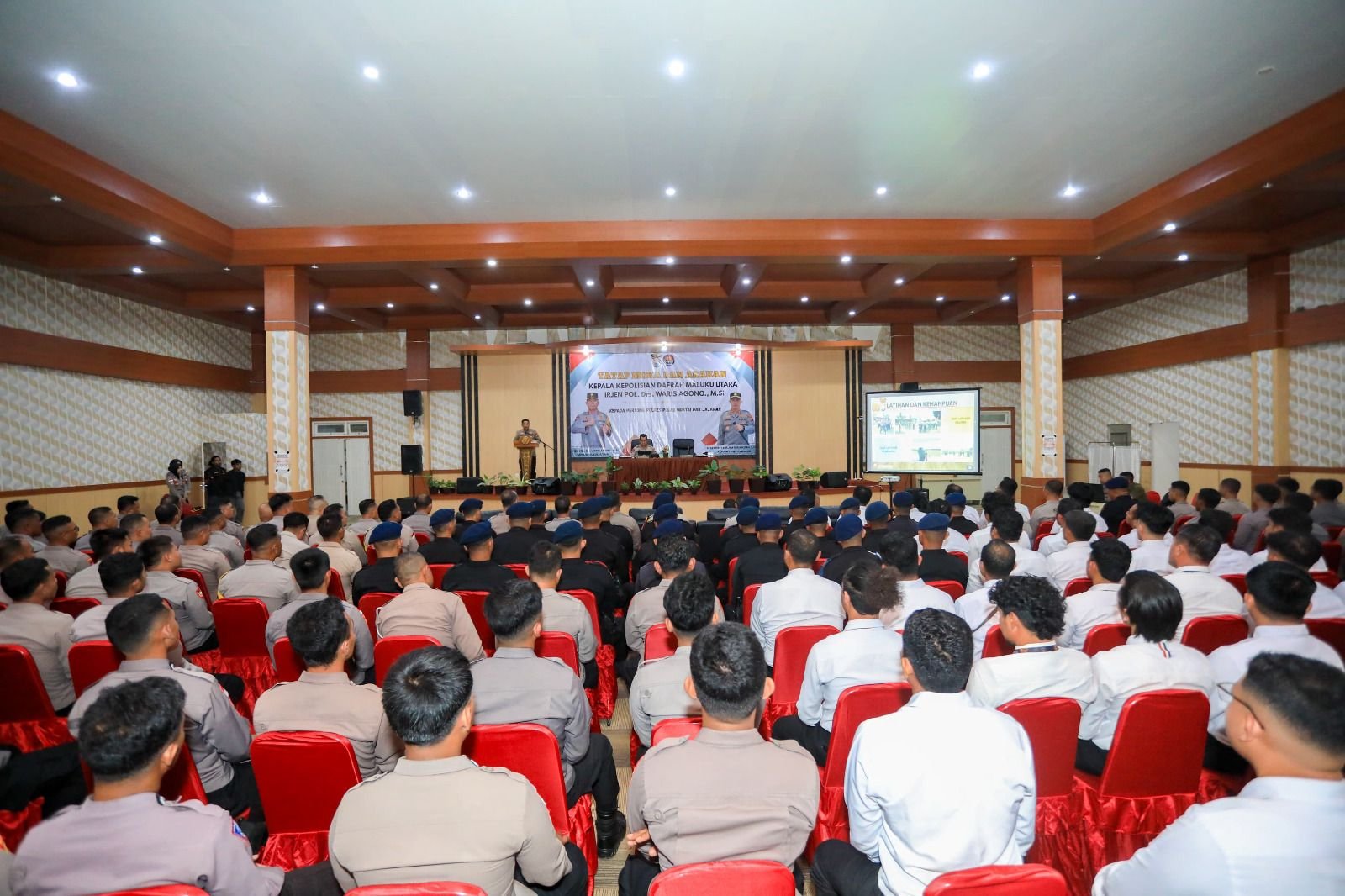 Dalam arahannya, Kapolda Maluku Utara Irjen Pol. Drs. Waris Agono, M.Si., menyampaikan sejumlah poin penting, mulai dari motivasi bagi personel, penegakan disiplin, hingga strategi penanganan konflik sosial.
