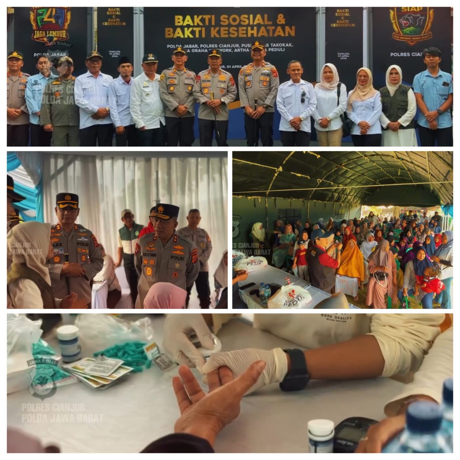 “Melalui kegiatan bakti kesehatan dan bakti sosial ini, kami ingin hadir lebih dekat dengan masyarakat serta memberikan kontribusi nyata dalam membantu meringankan beban warga,” ujar Kapolres Cianjur.