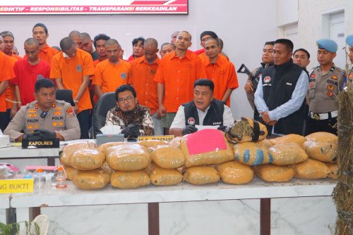 “Dari 36 tersangka ini, kami menyita barang bukti sabu seberat 86,47 gram, daun ganja kering siap edar seberat 65,50 kilogram, pil ekstasi sebanyak 5 butir, 6 hektare ladang ganja di Bukit Tor Sihite, dan 6 batang tanaman ganja di Pegunungan Hutabargot,” ujar AKBP Paloh.