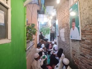 Kpktipikor.id // Bekasi Kota – Kapolsek Bekasi Barat, AKP Dr. H. Wahyudi, SH., MH., menghadiri acara peringatan Maulid Nabi Muhammad SAW yang dirangkai dengan kegiatan santunan untuk anak yatim. Acara ini diselenggarakan oleh Majelis Taklim dan Dzikir Syubbanul Akhyar pada Sabtu, 4 Oktober 2025, bertempat di Kampung Rawabebek RW 010, Kelurahan Kotabaru, Kecamatan Bekasi Barat, Kota Bekasi.