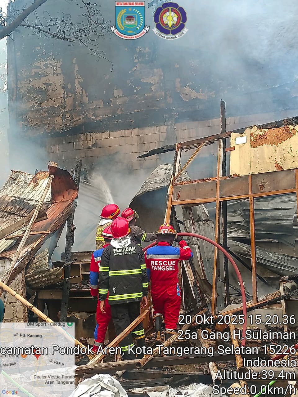 kpktipikor.id -Tangerang Selatan – Kebakaran hebat hanguskan sebuah gudang dekorasi yang berlokasi di Jalan Setia Budi, Kebon Karamanggis, RT 002/004, Kelurahan Pondok Kacang Timur, Kecamatan Pondok Aren, Kota Tangerang Selatan. (20/10/25).