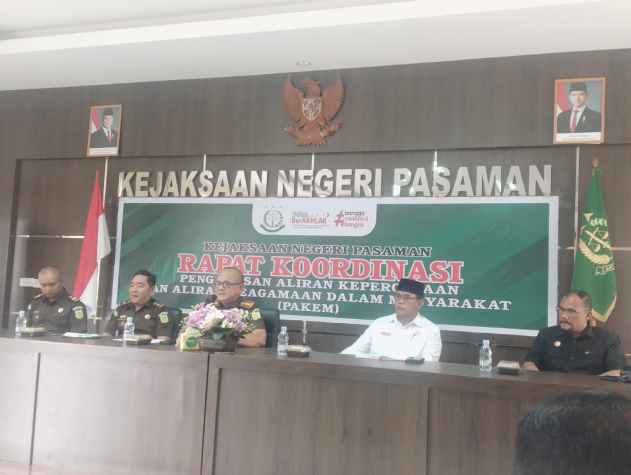 Kejaksaan Negeri Pasaman,kpktipikor. id – menggelar Rapat Koordinasi (Rakor) Pengawasan Aliran Kepercayaan dan Aliran Keagamaan dalam Masyarakat (PAKEM) pada Rabu (19/11) di Aula Kejari Pasaman. Rakor ini menghadirkan berbagai unsur penting daerah, mulai dari Intel Kejari Pasaman, Kesbangpol, Kodim 0305/Pasaman, Polres Pasaman, Kemenag, MUI, BIN Pasaman, hingga para camat dan wali nagari se-Kabupaten Pasaman.19/11/2025