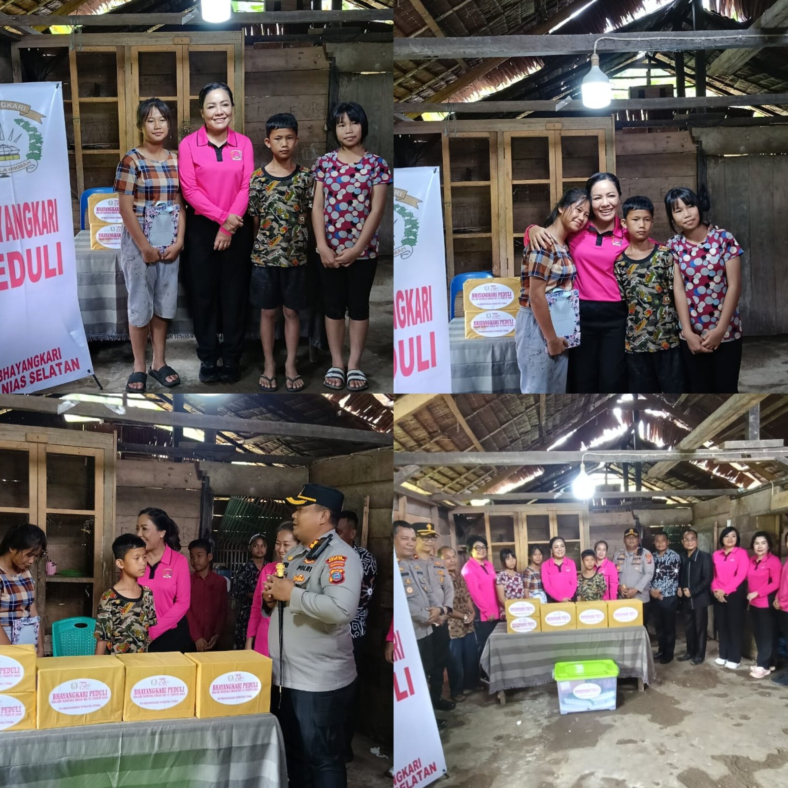 NIAS SELATAN kpktipikor.id– Ketua Bhayangkari Daerah Sumatera Utara, Ny. Monarika Wishnu Hermawan, bersama rombongan melaksanakan kunjungan sosial ke Desa Mehaga, Kecamatan Somambawa, Kabupaten Nias Selatan, pada Minggu (12/10/2025). Kunjungan tersebut merupakan bagian dari kegiatan bakti sosial Bhayangkari Sumut dalam rangka menyalurkan bantuan sosial (bansos) kepada tiga anak yatim-piatu di desa tersebut.