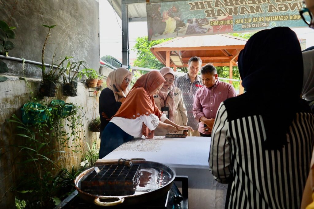 Rombongan Bank Indonesia yang dipimpin Kepala Grup Bank Indonesia Provinsi Sulawesi Selatan, Wahyu Purnama A, bersama jajarannya, menyaksikan langsung proses produksi batik mulai dari persiapan kain hingga melihat hasil akhir. Dalam diskusi, Wahyu Purnama mengajak kelompok untuk menambah variasi corak agar lebih beragam.