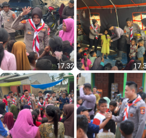 Mahasiswa STIK Angkatan 83 Laksanakan Trauma Healing bagi Anak-Anak Terdampak Banjir di Desa Lubuk Pusaka, Kecamatan Langkahan