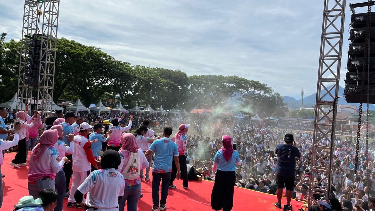 Usai kegiatan lari, acara dilanjutkan dengan senam aerobik, pembagian door prize, dan hiburan musik yang dimeriahkan oleh penyanyi lokal Jackson Zeran dengan lagu populernya “Tabola-Bale”, yang menambah semarak suasana penuh warna di Lapangan Ngalaramo.