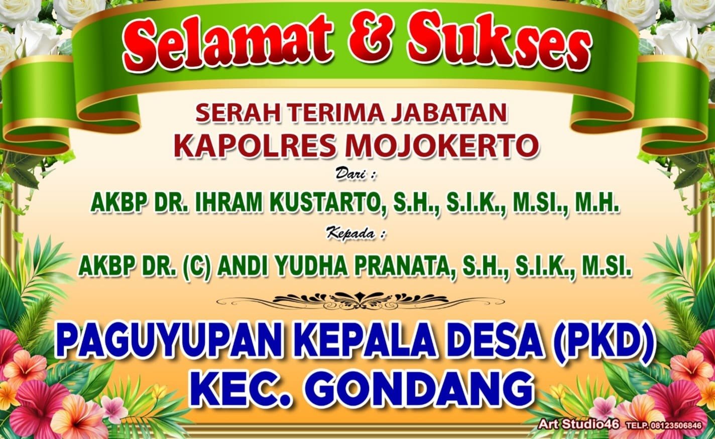 Kabupaten Mojokerto – Paguyupan Kepala Desa (PKD) Kecamatan Gondang mengucapkan selamat dan sukses pada acara serah terima jabatan Kapolres Mojokerto. Jabatan yang sebelumnya diemban oleh AKBP Dr. Ihram Kustarto, S.H., S.I.K., M.Si., M.H., kini diteruskan oleh AKBP Dr. (C) Andi Yudha Pranata, S.H., S.I.K., M.Si.