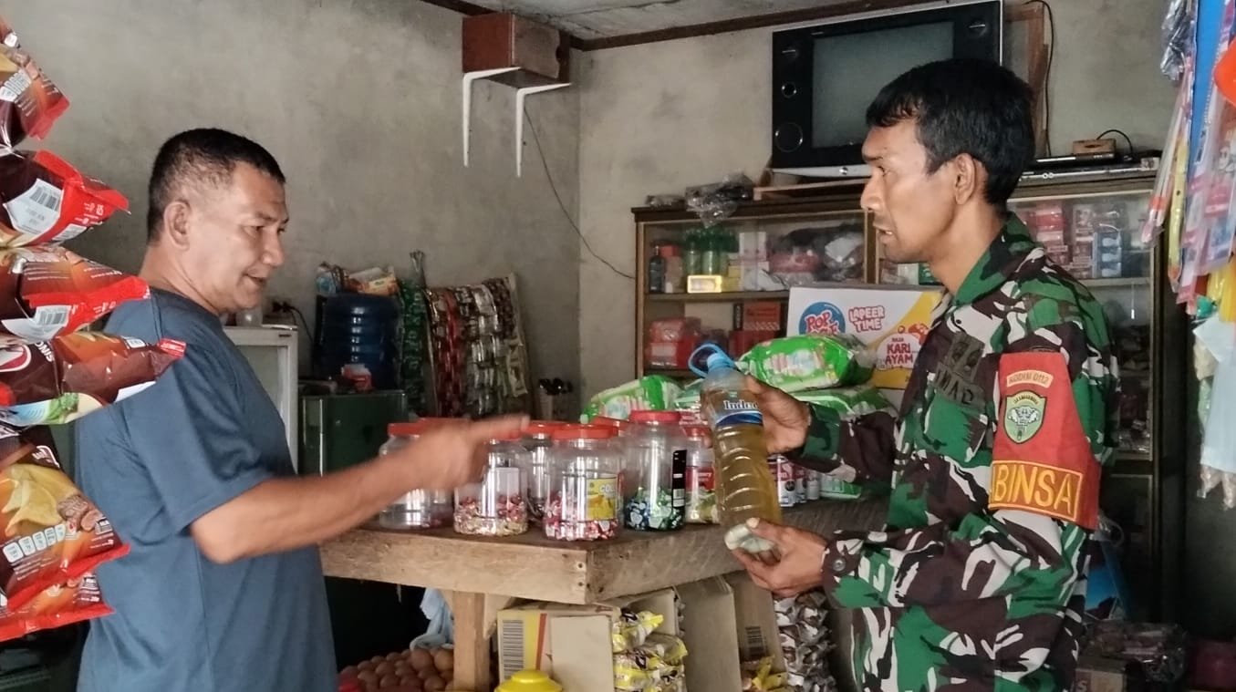 Dalam pengecekan tersebut, Serda M. Khadafi memeriksa berbagai komoditas penting seperti beras, gula, minyak goreng, telur, susu, garam, serta kebutuhan lainnya yang menjadi kebutuhan sehari-hari warga.