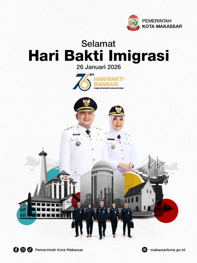Makassar,KPK Tipikor,id – Pemerintah Kota Makassar mengucapkan selamat memperingati Hari Bakti Imigrasi ke-76. Acara peringatan yang diperingati setiap tahunnya menjadi momentum untuk menegaskan pentingnya sistem keimigrasian yang profesional, berintegritas, dan adaptif terhadap dinamika global yang terus berkembang sebagai dasar pelayanan publik yang kuat.