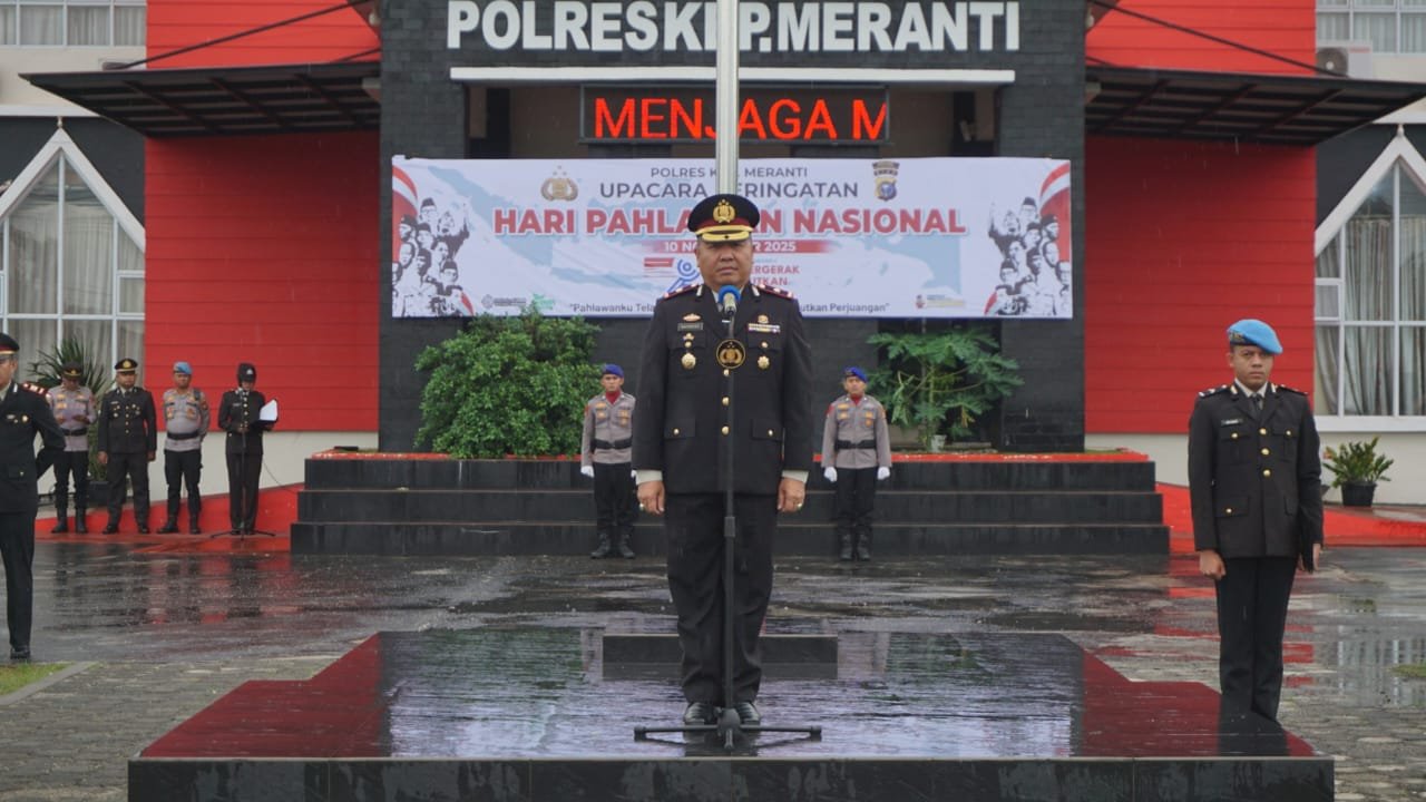 Kepulauan Meranti Riau. Kpktipikor.id – Sebagai bentuk penghormatan dan penghargaan terhadap jasa para pahlawan bangsa, Polres Kepulauan Meranti, melaksanakan upacara peringatan Hari Pahlawan Nasional Tahun 2025 di halaman Mako Polres, Jalan Lintas Gogok, Desa Gogok Darussalam, Kecamatan Tebing Tinggi Barat Kabupaten Kepulauan Meranti Senin (10/11/2025) pagi.