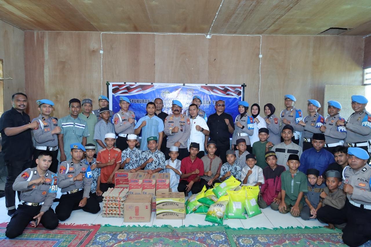 Kabid Propam Polda Malut, Kombes Pol. Indrapramana H., S.I.K., turut hadir bersama Kasubbid Wabprof, AKBP Syamsul Alam, S.H., serta sejumlah personel Bidpropam lainnya. Dalam suasana sederhana namun penuh makna, para anggota Propam berbagi kebahagiaan dengan anak-anak pesantren.