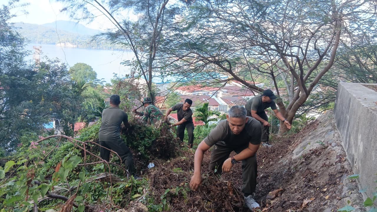 Sabang Aceh, kpktipikor.id -Personel Kodim 0112/Sabang bersama unsur TNI-Polri dan instansi pemerintah Kota Sabang melaksanakan kegiatan pembersihan lingkungan di area Kantor PDAM Tirta Aneuk Laot, Jumat (3/10/2025). Aksi gotong royong ini dilakukan sebagai wujud sinergi antar instansi sekaligus kepedulian terhadap kebersihan lingkungan kerja dalam rangka HUT TNI ke – 80.