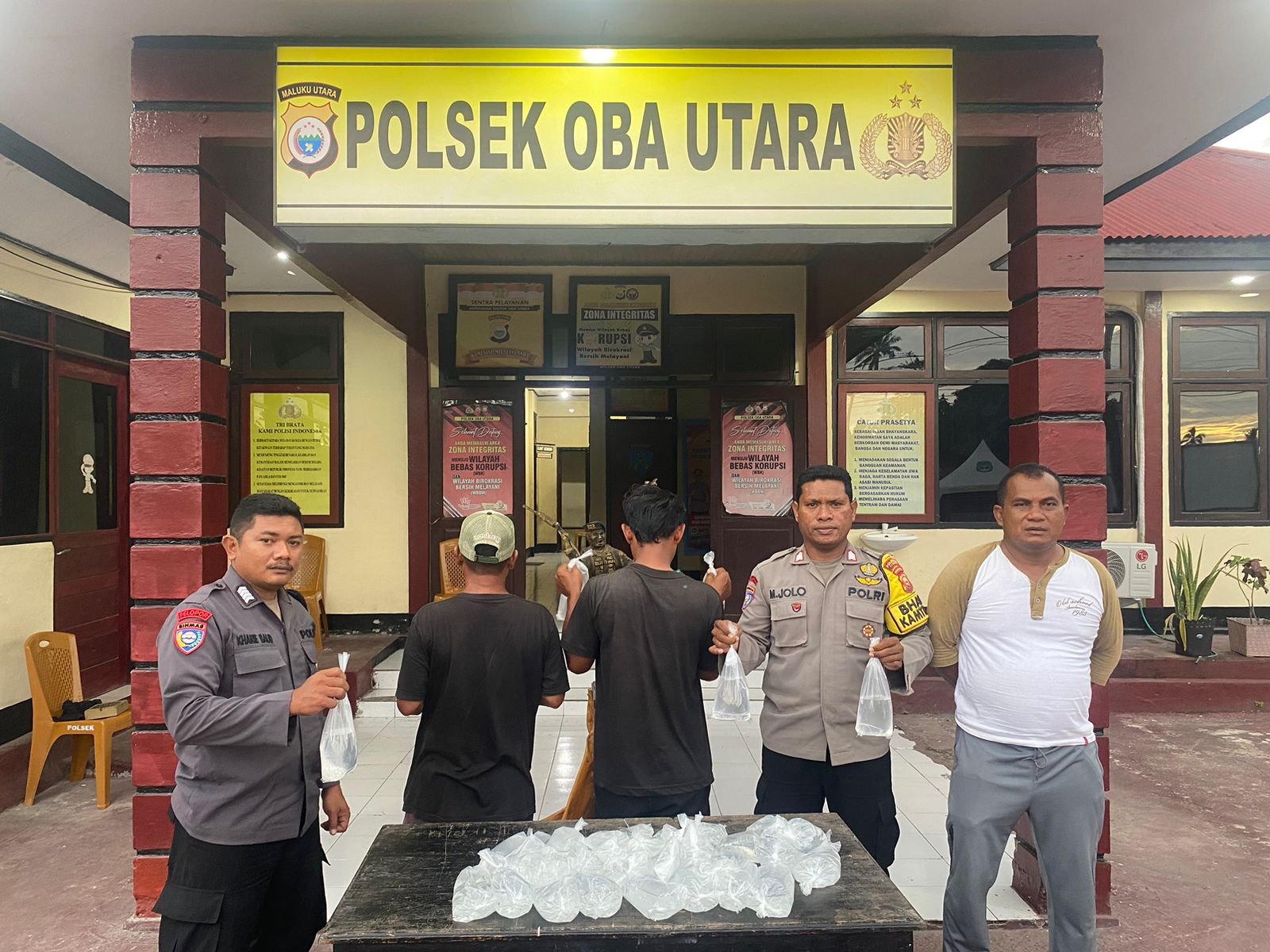 Kapolsek menambahkan, kedua pelaku beserta barang bukti dan kendaraan operasionalnya telah diamankan di Mako Polsek Oba Utara untuk menjalani proses penyidikan lebih lanjut.