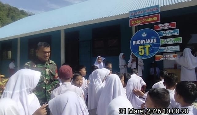 Sabang Aceh,kpktipikor. id. – Dalam upaya membentuk karakter generasi muda yang disiplin dan berakhlak baik, Babinsa Koramil 02/Sukakarya Kodim 0112/Sabang, Sertu Hendra, melaksanakan kegiatan komunikasi sosial (Komsos) dengan para siswa/siswi SD Negeri 17 di wilayah binaannya, Selasa (31/03/2026).