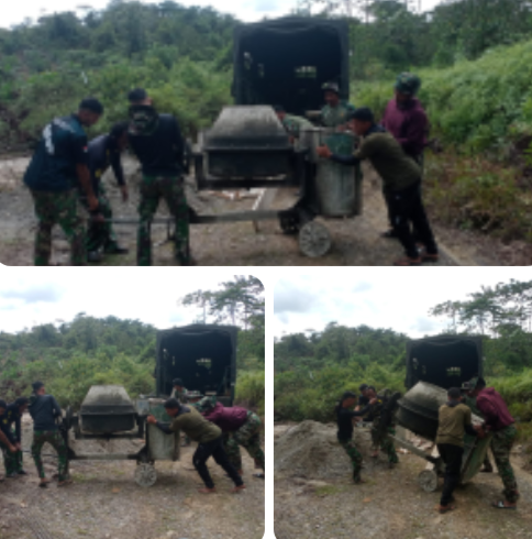Salah satunya dengan pekerjaan box Culvert yang selama ini sulit dilalui oleh masyarakat setempat. Dimana untuk kegiatan awal ini, para anggot satgas mulai menurunkan peralatan berupa mesin molen beton untuk membantu dalam pengecoran.