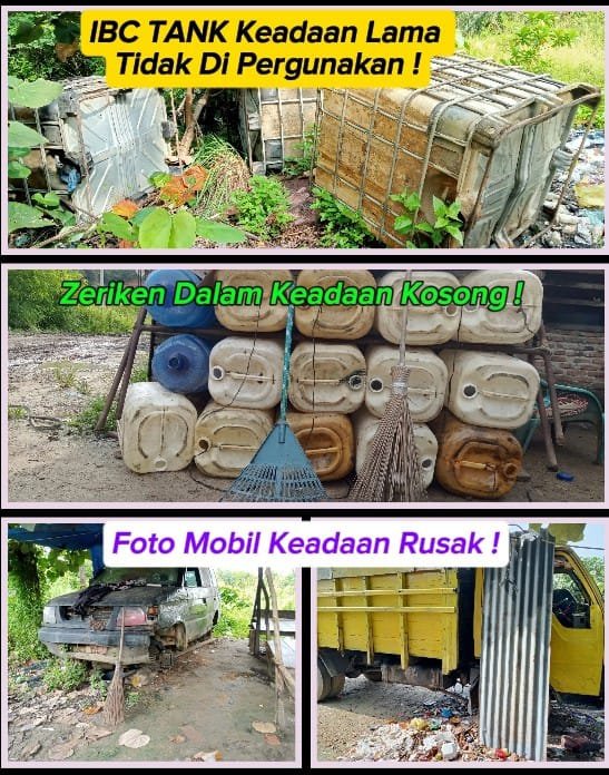 Hanya Yang ada didapat di Lokasi adalah Ada Dua mobil yang rusak, puluhan Zerigen yang kosong , IBC Tank yang sudah rusak, Sudah lama tidak di pakai .