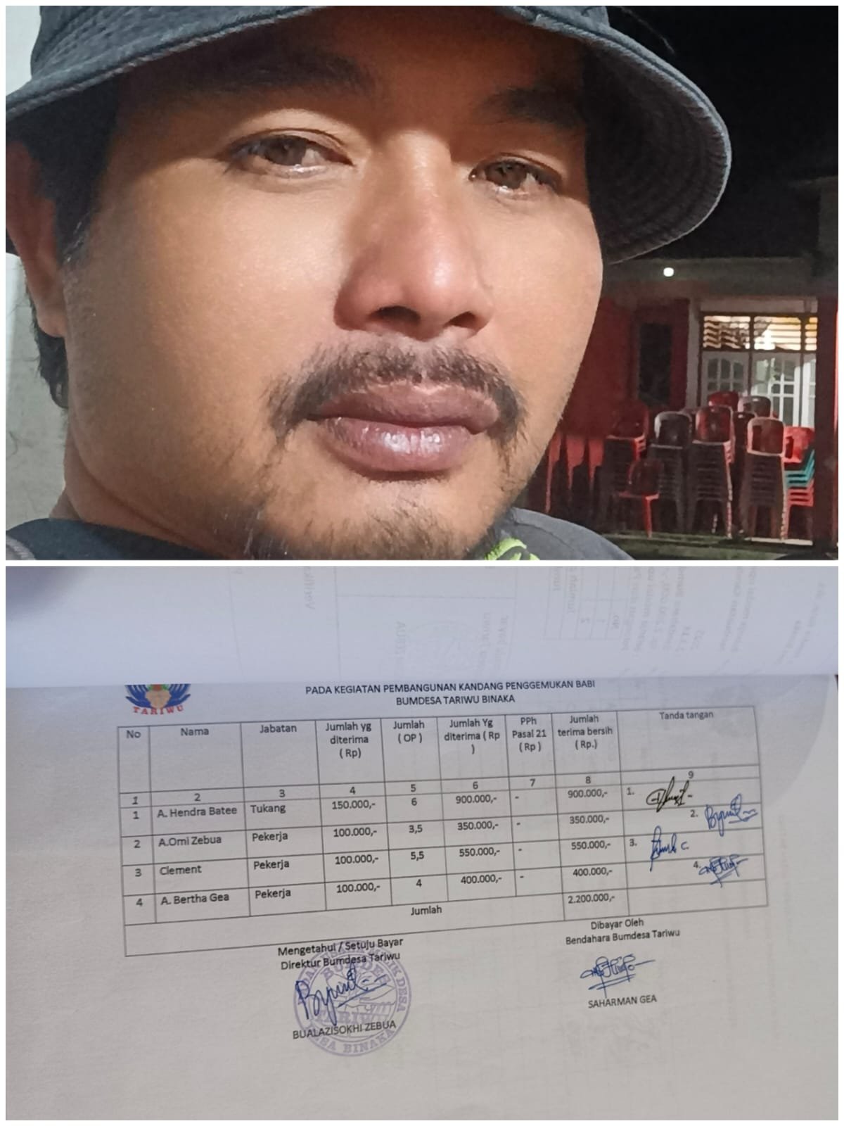 Dugaan tersebut mencuat setelah Sekdes melakukan penelusuran terhadap laporan penggunaan dana proyek fisik yang dikelola BUMDes. Dalam hasil penelusuran itu, ditemukan nama-nama jajaran direktur, sekretaris, bendahara, hingga pengelola unit usaha tercatat dalam daftar Upah Harian Kerja (HOK).