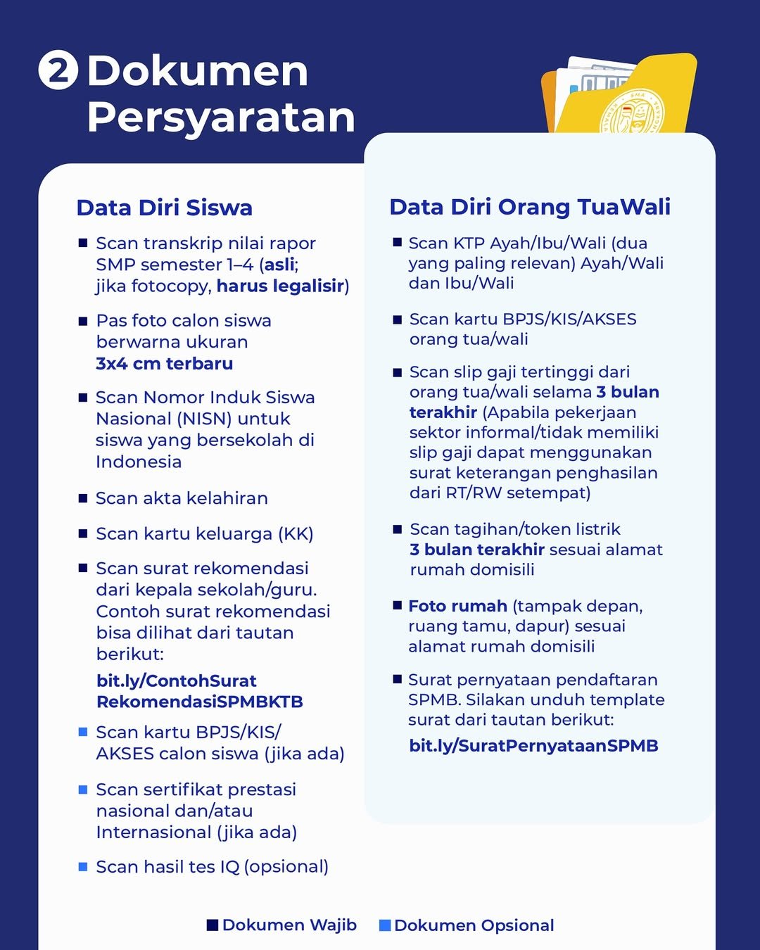 Pendaftaran dilakukan secara daring melalui sistem SPMB di laman resmi https://schools.kaderbangsa.foundation/. Calon peserta diwajibkan membuat akun dengan email aktif, melakukan verifikasi, mengisi formulir pendaftaran, mengunggah dokumen yang disyaratkan, dan menyimpan bukti pendaftaran.