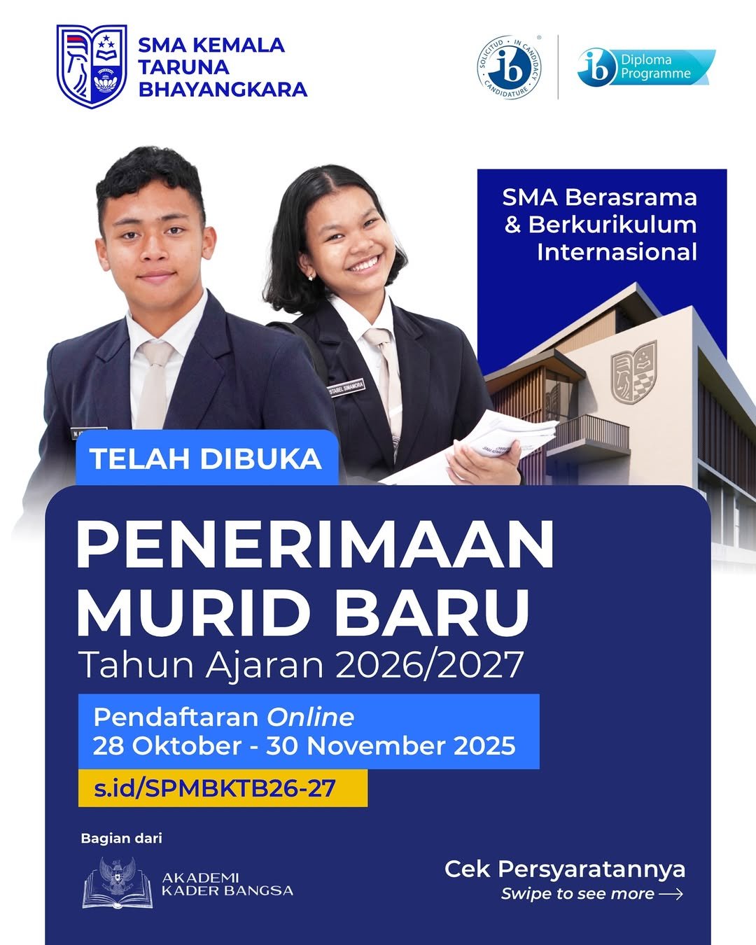 “SMA Kemala Taruna Bhayangkara hadir dengan misi mencetak calon pemimpin bangsa berkelas global. Sekolah ini menerapkan kurikulum International Baccalaureate (IB) dan proses seleksi yang sangat ketat untuk mewujudkan visi tersebut,” ungkap Kabid.