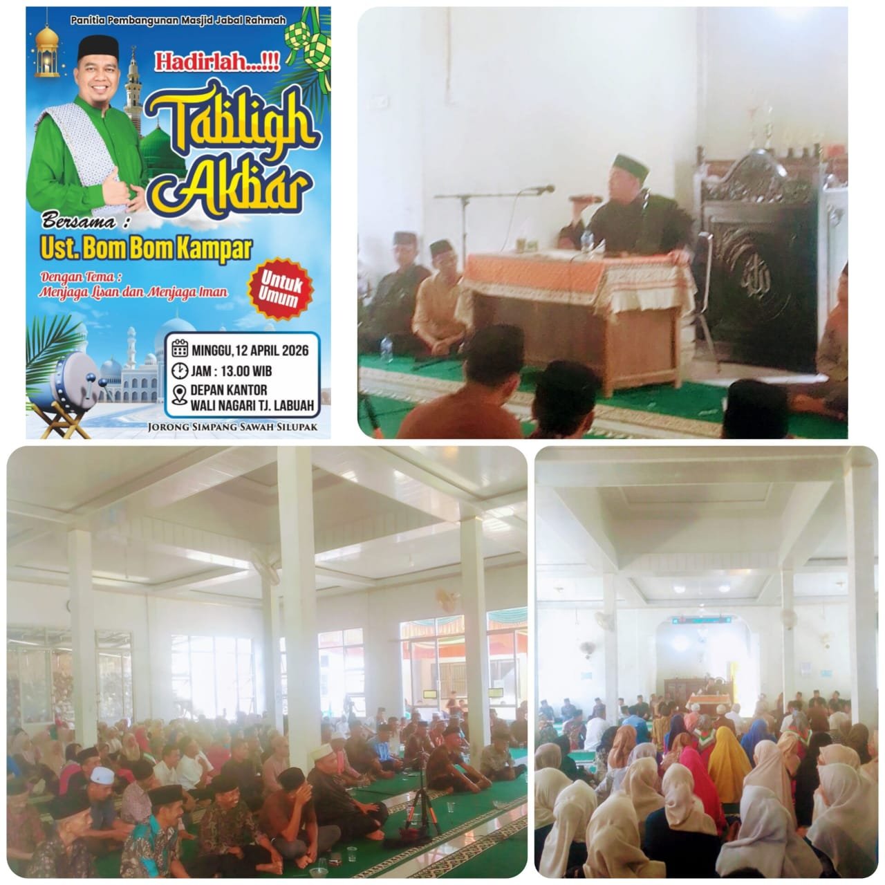 Tabligh Akbar kali ini yang diadakan oleh panitia dan masyarakat Nagari Tanjung Labuah ini dengan tema/ Konsep menjaga lisan dan menjaga iman.