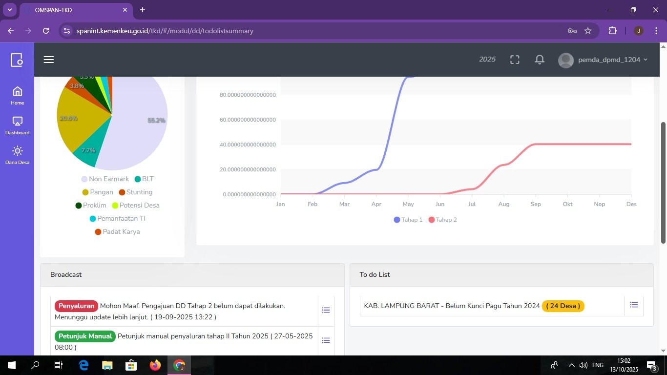 Lampung Barat, media kpkttipikor.id-Pencairan Dana Desa (DD) tahap II tahun anggaran 2025 hingga kini belum dapat diproses oleh Dinas Pengelolaan Keuangan (DPJK) Kabupaten Lampung Barat. Hambatan tersebut terjadi sejak 19 September 2025, akibat adanya pembaruan sistem aplikasi OMSPAN (Online Monitoring SPAN) di lingkungan Kementerian Keuangan Republik Indonesia (Kemenkeu RI).