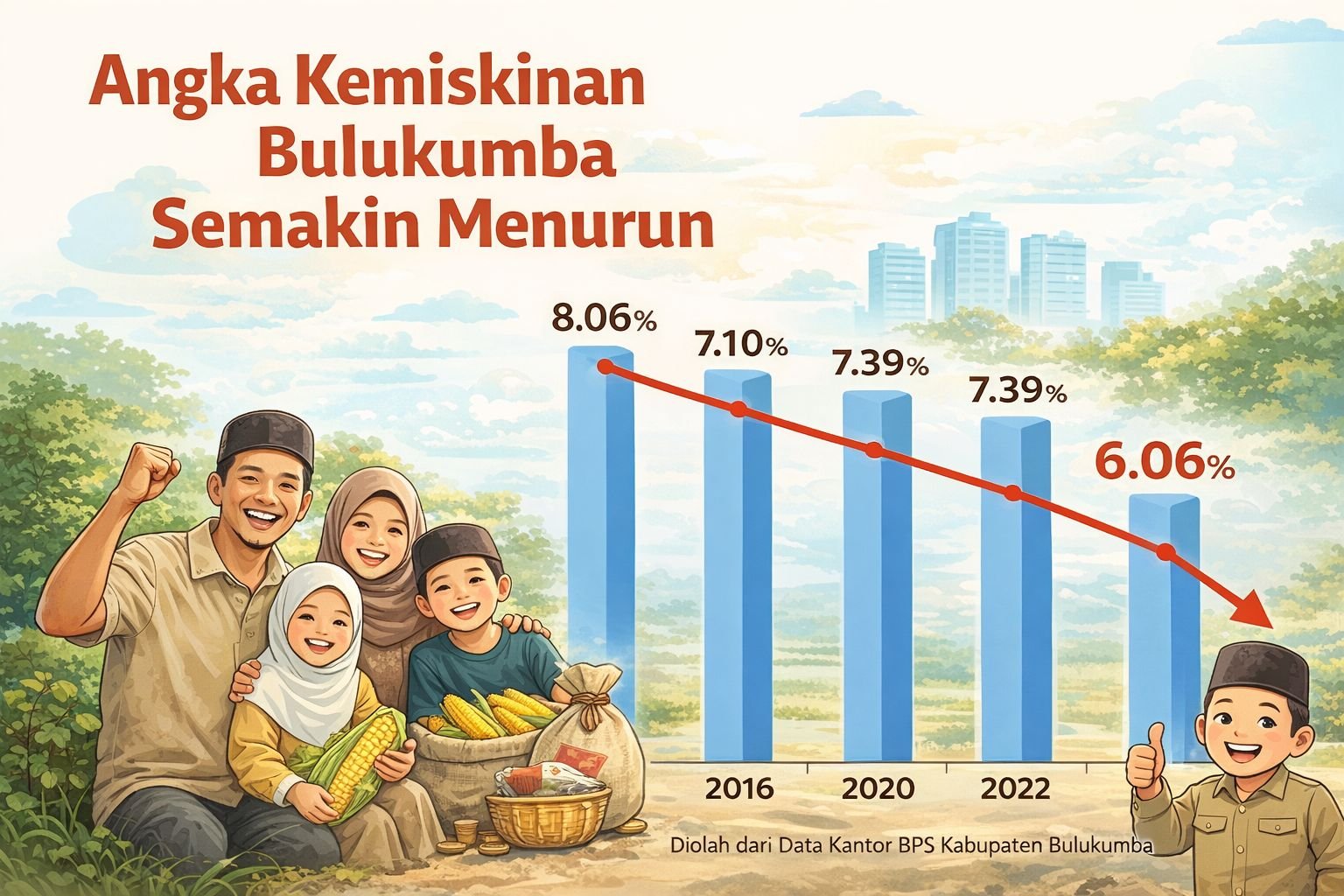 Pemerintah Kabupaten Bulukumba melalui Kabid Humas Diskominfo, Andi Ayatullah Ahmad menyampaikan bahwa jika ditarik ke belakang, tren penurunan kemiskinan terlihat jelas. Pada Maret 2021, angka kemiskinan Bulukumba masih berada di kisaran 7,43 persen, kemudian terus menurun menjadi 7,39 persen (2022), 7,22 persen (2023), 6,71 persen (2024), hingga akhirnya mencapai 6,06 persen pada 2025.