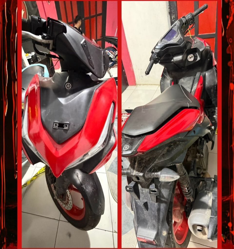 Barang bukti yang berhasil diamankan berupa 1 (satu) unit sepeda motor Yamaha Aerox warna merah, yang diketahui warnanya telah diubah oleh terduga pelaku.
