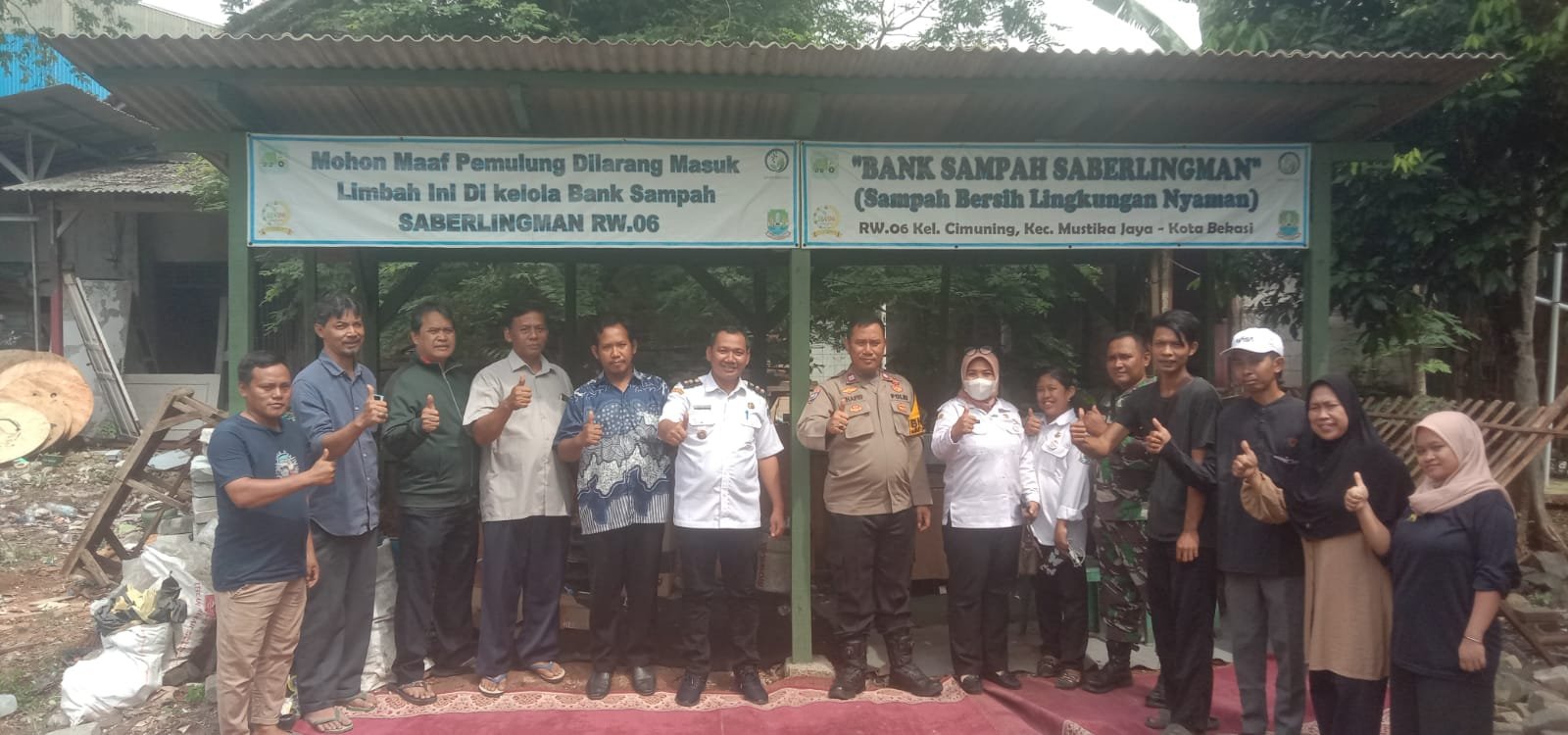 Kegiatan pembukaan Bank Sampah dihadiri lengkap oleh unsur Tiga Pilar Kelurahan Cimuning, yang menegaskan komitmen mereka terhadap pengelolaan lingkungan berbasis komunitas.